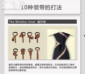 2. 《领带打法全解析》:这是一段时长约10分钟的视频,涵盖了多种领带打法,并介绍了领带的搭配技巧。